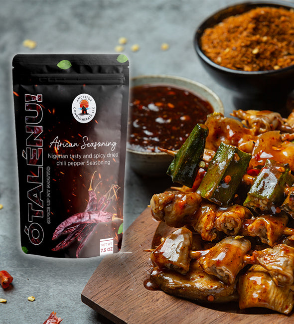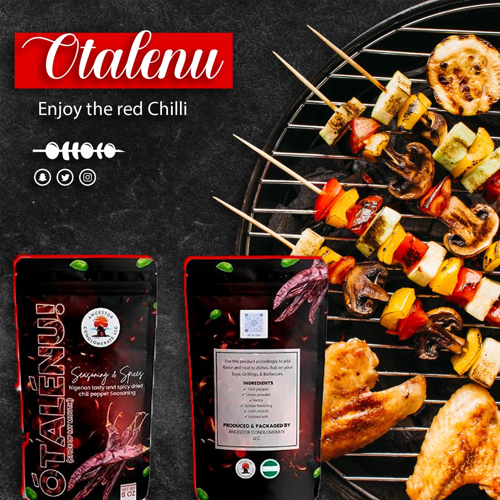 We are producing the highest standard of authentic seasoning that perfectly captures the essence of Nigeria's culinary traditions. We at Otalenu are committed to bringing Nigerian food's deep and genuine flavors to your kitchen. We have a strong passion for the Soul and Heart of Nigerian cuisine. In our opinion everyone should have the opportunity to experience the intense flavors that make Nigerian food unique. Nigerian Chili Pepper Seasoning offers you to make your food tempting and rich with its varied flavors.
